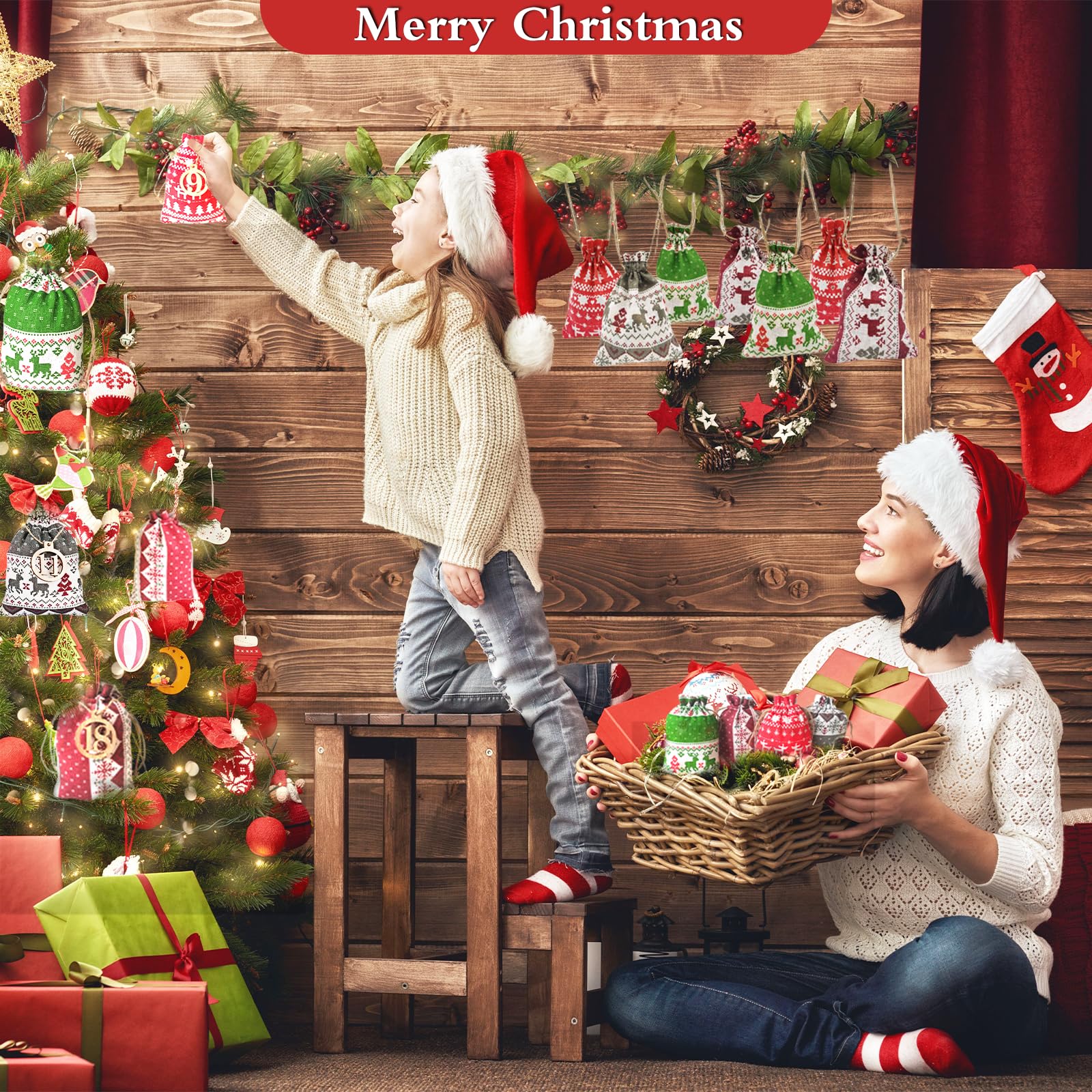24 Adventskalenders Om Te Vullen, Kerstcadeauzakjes, Stoffen Zakjes, Jute Zakjes Met 1-24 Cijferstickers En 24 Kerstcadeauhangers, Kerstkalenderzakjes/zakjes Voor Kerstmis